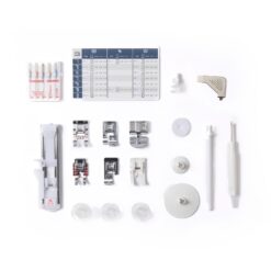 Pakkaukseen sisältyy 16 lisätarviketta, kuten erilaisia paininjalkoja, puolia, puhdistusvälineitä ja käytännöllinen lisävarustelaatikko niiden säilytykseen. Voit aloittaa ompelun heti ilman lisähankintoja! 🎁🧰