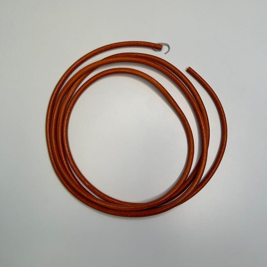 Nahkahihnan halkaisija 5mm ja pituus 185cm.