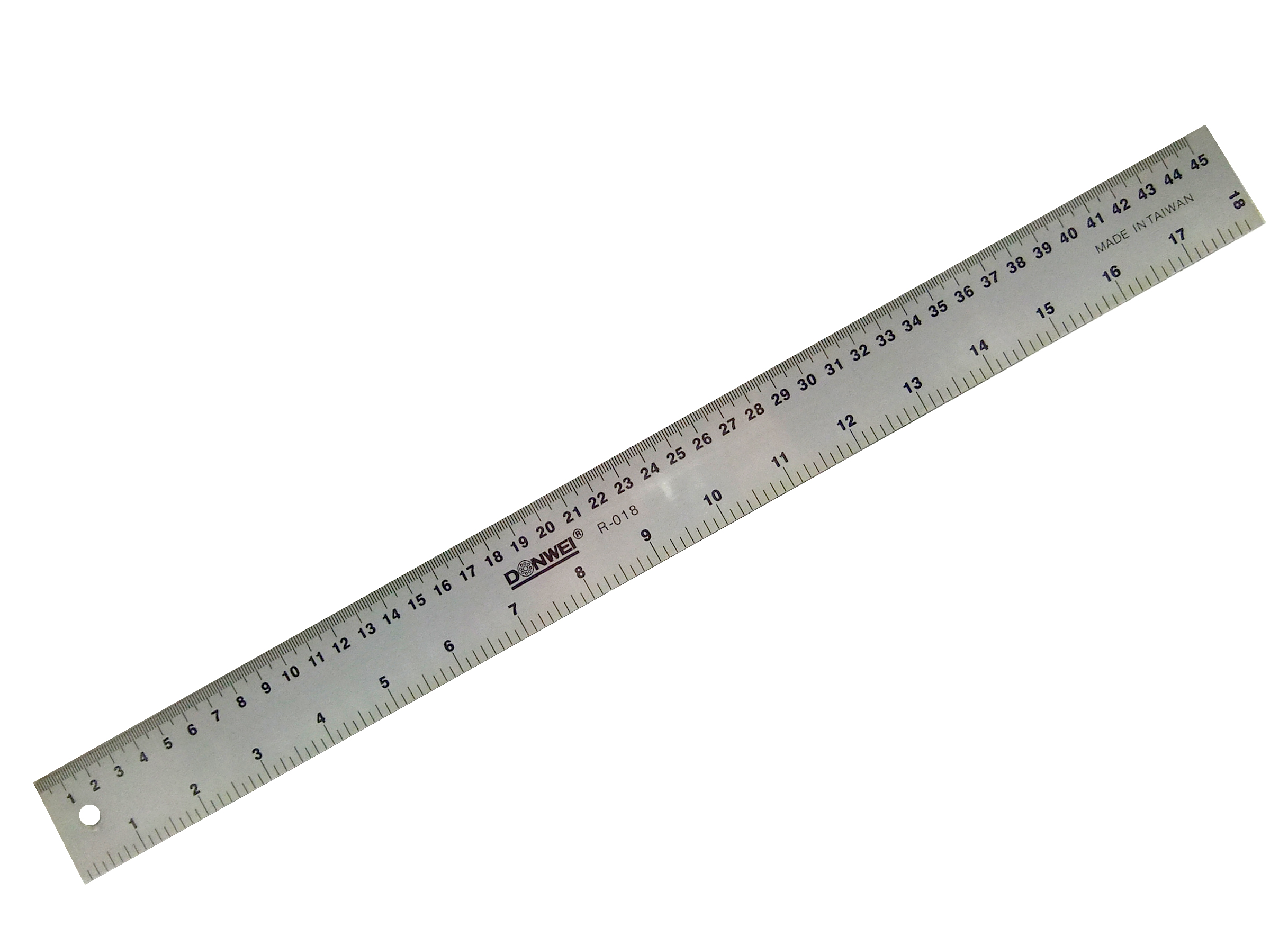 Laadukas alumiininen viivotin sentti- ja tuuma-asteikolla.